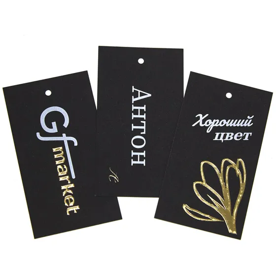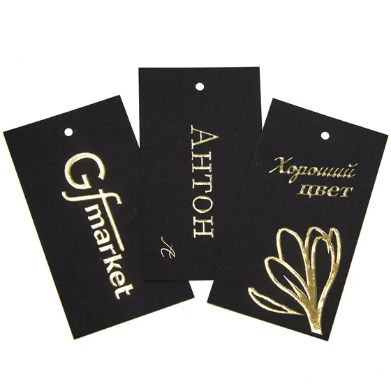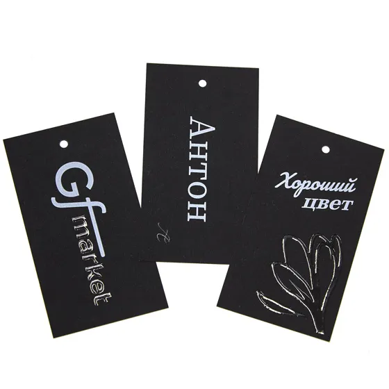 - С отделкой. Бирки для одежды с отделкой отличаются привлекательным дизайном. Размер — индивидуальный. При выборе параметров доступно несколько вариантов печати и оформления, включая вырезку требуемой фигуры по контуру, 3D фольгирование, любой вид ламинации.